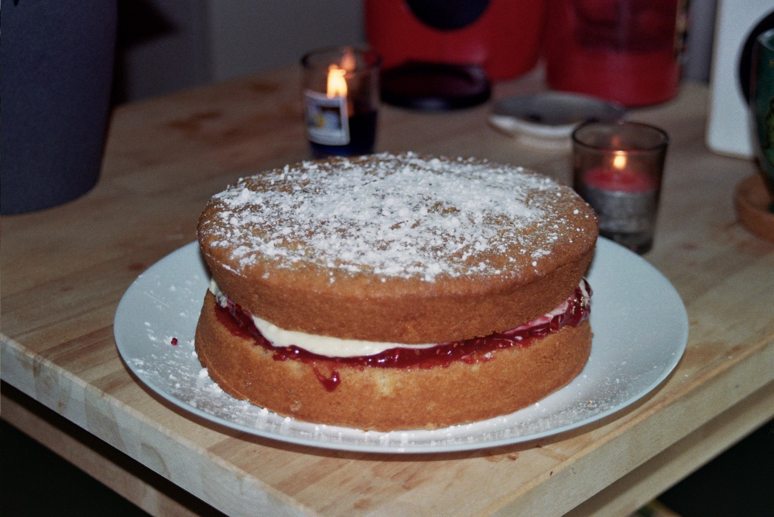 It’s also the only time of year that I’m patient enough to even attempt baking. The summer months are somewhat of a hell for us. Our attic flat heats up to temperatures only rivalled by the reptile house at the zoo. But if there’s one thing I’ve mastered as a vegan, that I can comfortably come back to every year, it’s the sponge cake.